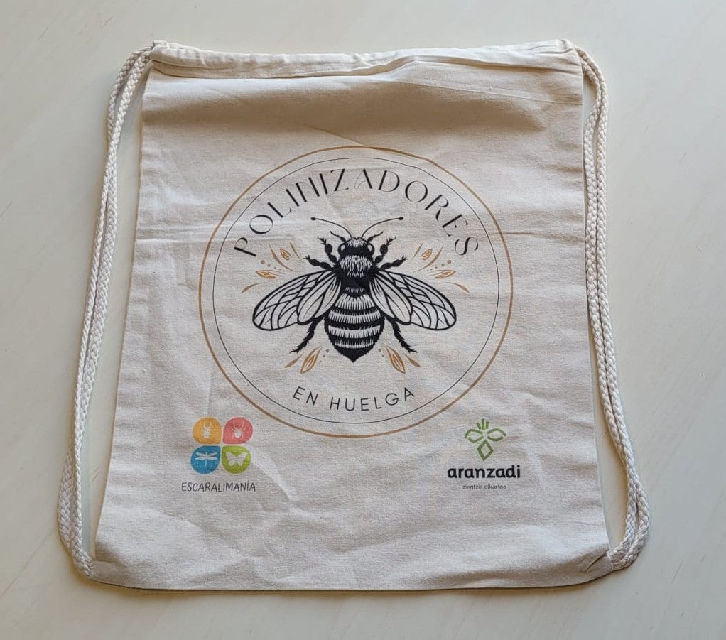 Oihalezko poltsa, polinizatzaile baten ilustrazioarekin